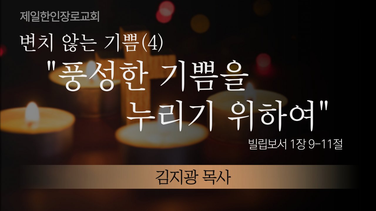 변치 않는 기쁨(4) - " 풍성한 기쁨을 누리기 위하여 " (2/8/26)