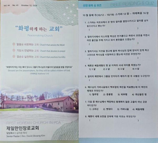 10월12일 주일광고/성경통독퀴즈