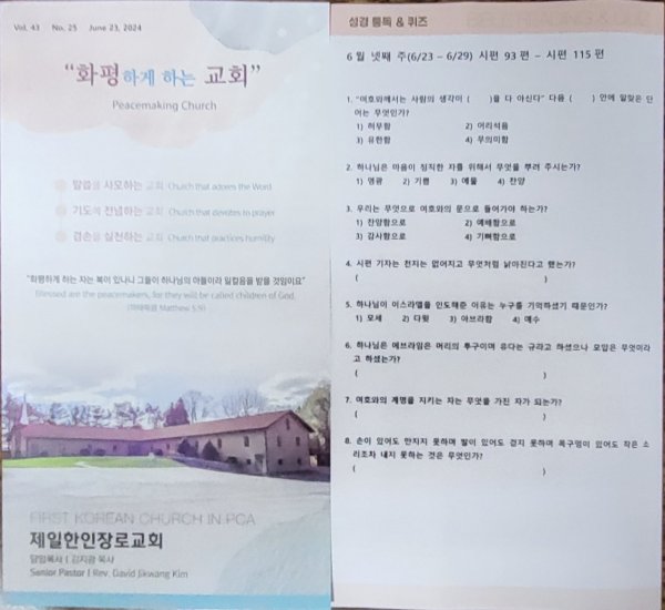 6월23일 주일광고/성경통독퀴즈