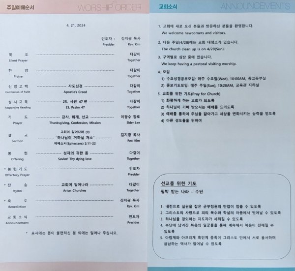 날짜: 2024.04.08 글쓴이 : 관리자 | 김지광담임목사 주일설교