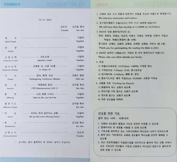 12월31일 주일광고/성경통독퀴즈
