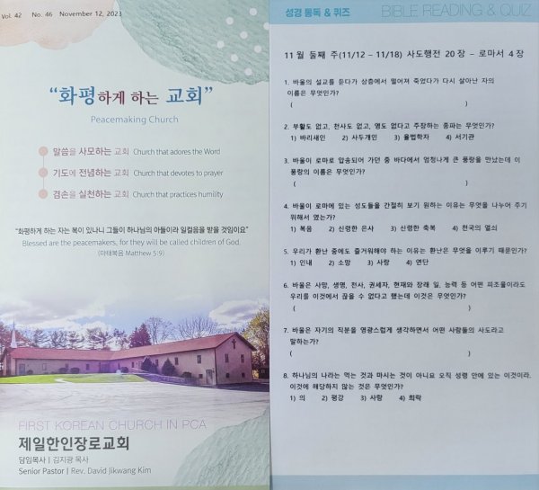 11월5일 주일광고/성경통독퀴즈