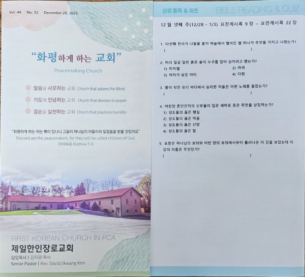 12월28일 주일광고/성경통독퀴즈