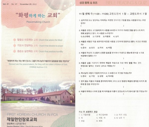 11월 20일 주일광고/성경통독퀴즈