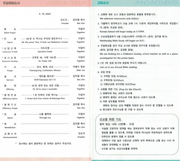 날짜: 2022.09.12 글쓴이 : 박귀성 | 김지광담임목사 주일설교