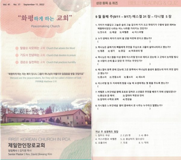 9월 11일 주일광고/성경통독퀴즈