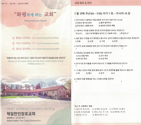7월24일 주일광고/성경통독퀴즈