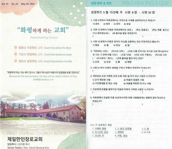 5월29일 주일광고/ 성경통독 퀴즈