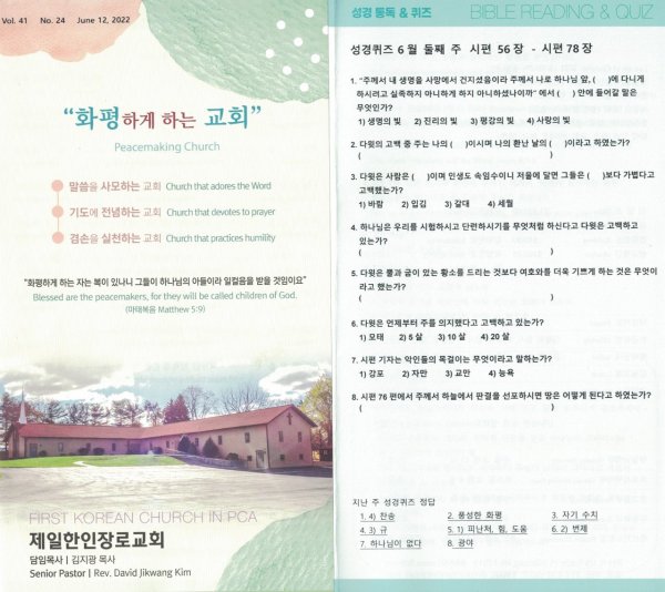 6월5일 주일광고/성경통독퀴즈
