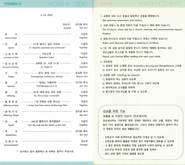 날짜: 2022.04.18 글쓴이 : 박귀성 | 특별예배 Special Service