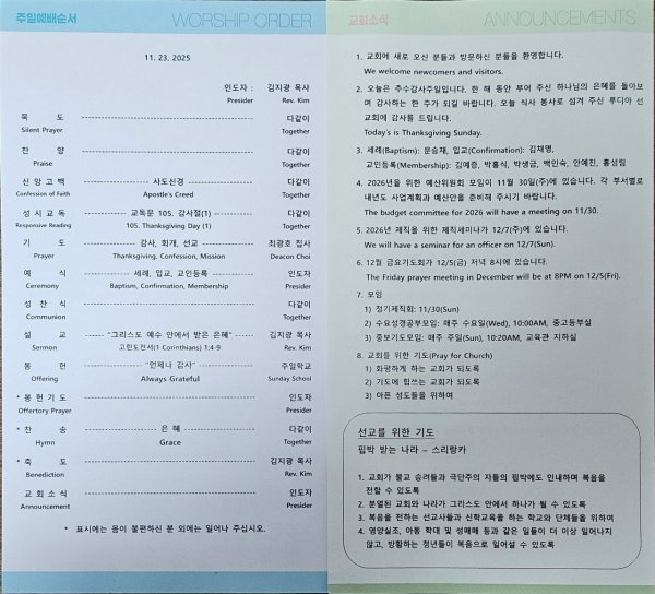 날짜: 2025.11.17 글쓴이 : 관리자 | 김지광담임목사 주일설교