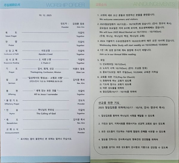 날짜: 2025.10.13 글쓴이 : 관리자 | 김지광담임목사 주일설교