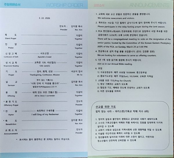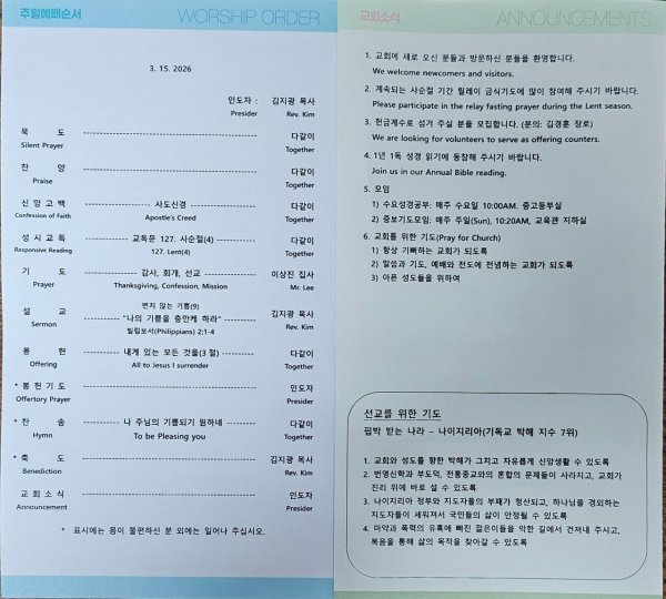 날짜: 2026.03.16 글쓴이 : 관리자 | 김지광담임목사 주일설교