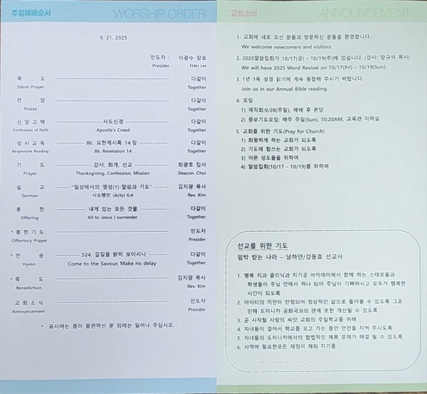 날짜: 2025.09.22 글쓴이 : 관리자 | 김지광담임목사 주일설교