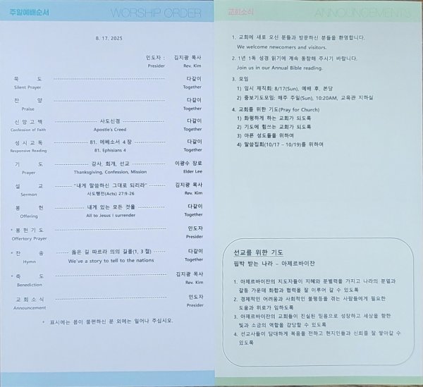 날짜: 2025.08.18 글쓴이 : 관리자 | 김지광담임목사 주일설교