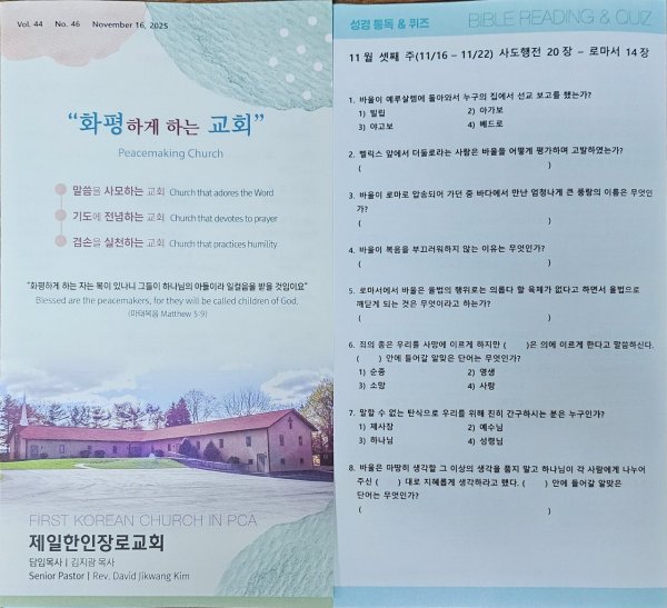 날짜: 2025.11.10 글쓴이 : 박귀성 | 특별예배 Special Service