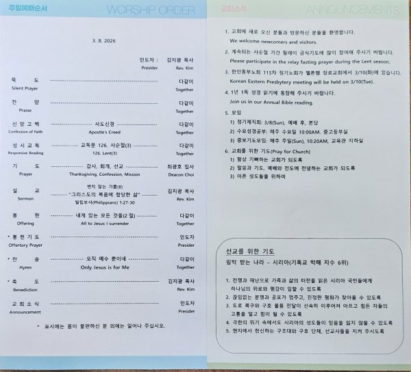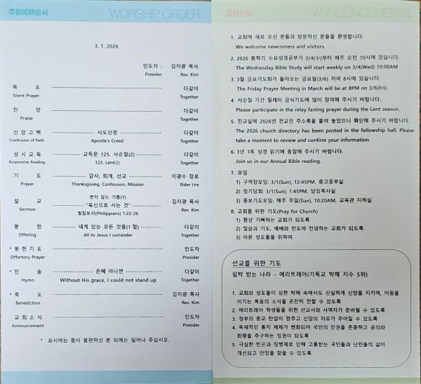 날짜: 2026.03.02 글쓴이 : 관리자 | 김지광담임목사 주일설교