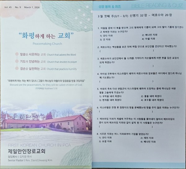 3월1일 주일광고/성경통독퀴즈