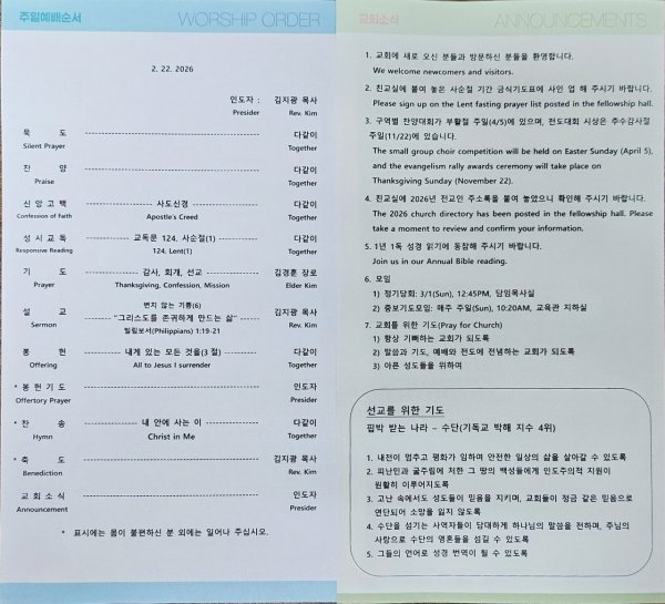 날짜: 2026.02.16 글쓴이 : 관리자 | 김지광담임목사 주일설교