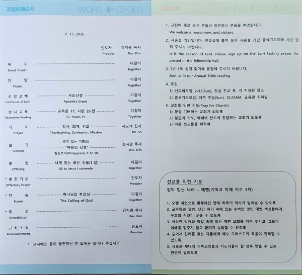 날짜: 2026.02.09 글쓴이 : 관리자 | 김지광담임목사 주일설교