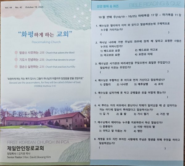 날짜: 2025.10.19 글쓴이 : 박귀성 | 특별예배 Special Service