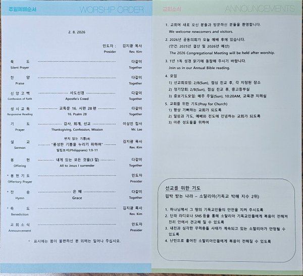 날짜: 2026.02.02 글쓴이 : 관리자 | 김지광담임목사 주일설교